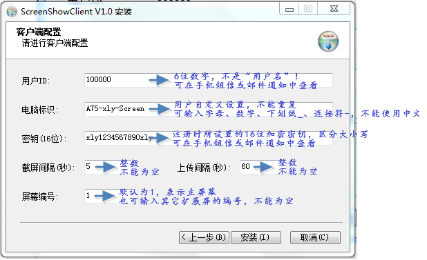 注册成功后,ScreenShow会向您的手机和邮箱发送重要的用户信息,此信息将在终端程序安装配置中使用,需要妥善保存。