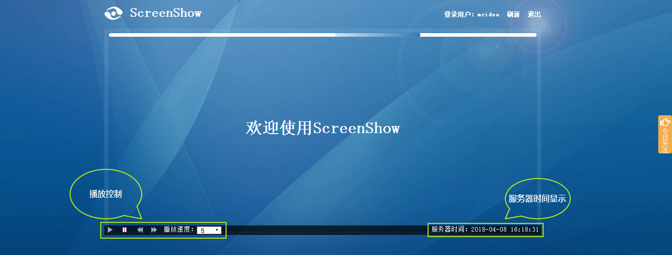 关键屏幕、关键价值!时机稍纵即逝,ScreenShow帮助您及时抓住关键屏幕、关键信息,同时抓住关键的价值和成功的机会。以“屏幕”为主体,以“可见”为核心,以“实时”为切入点,通过ScreenShow您可以随时随地使用电脑或手机浏览器,对所关注的屏幕进行实时查看或展示给他人。